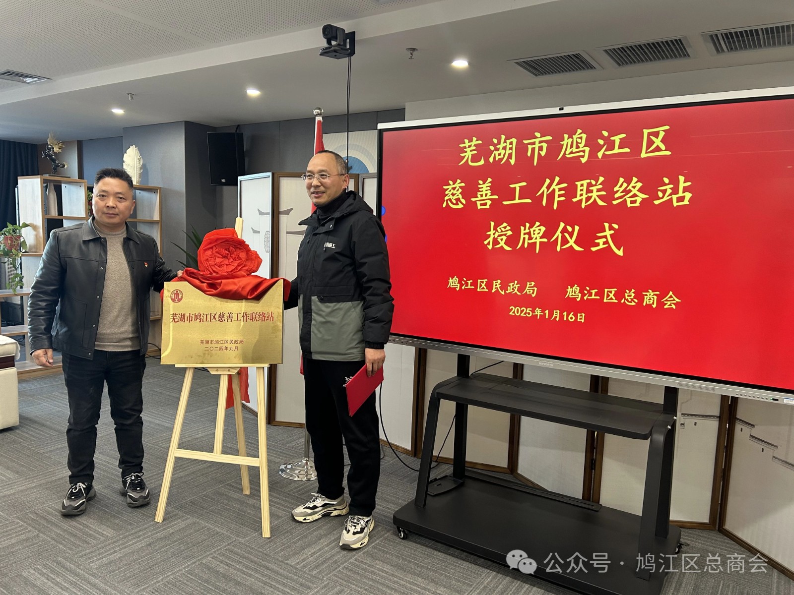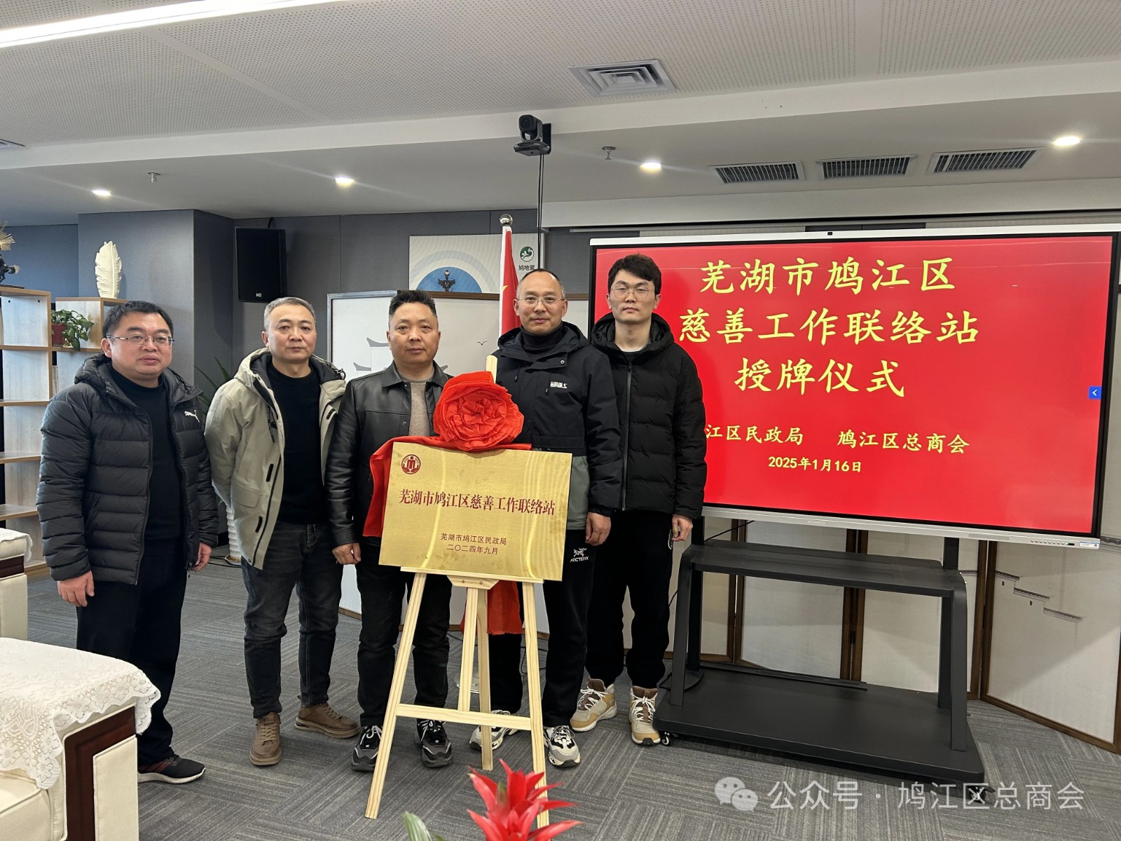 1月16日,鸠江区民政局正式授予鸠江区工商联(总商会)“芜湖市鸠江区慈善工作联络站”称号。